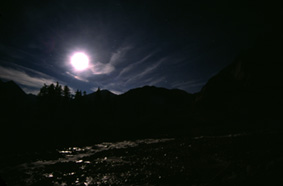 Mondschein am Fluß 10.9.2000 22.00 50sek 3,5:ca30 Fujichrom 100 La Fouly bei St.Bernhard, Schweiz | |
