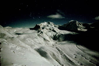 114- 3a) Gornergletscher im Licht des Mondes 17.11.1999 Ni 3,5-18 30 sek bei Zermatt, Schweiz | |