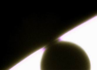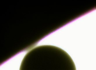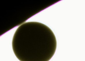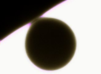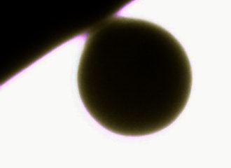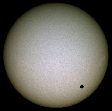 Erstmals seit 128 Jahren ereignete sich wieder ein Transit der Venus vor der Sonne, in Mitteleuropa zwischen 7.20 und 13.23 MESZ. Dabei befand sich der Planet in unterer Konjunktion und hatte mit 43,2 Millionen km die geringste Entfernung zur Erde. Damit erreichte das Planetenscheibchen mit gut 58" den maximalen Durchmesser. | |