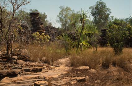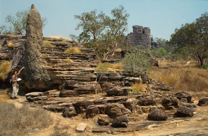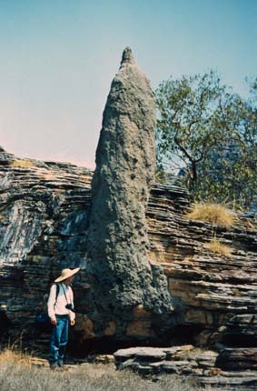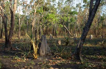Wie die Bäume so überstehen auch die bis zu 7 Meter hohen Hügel der Spinifex-Termiten die alljährlichen Buschfeuer | |