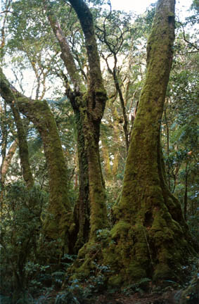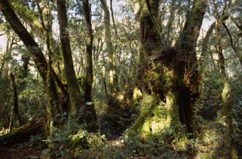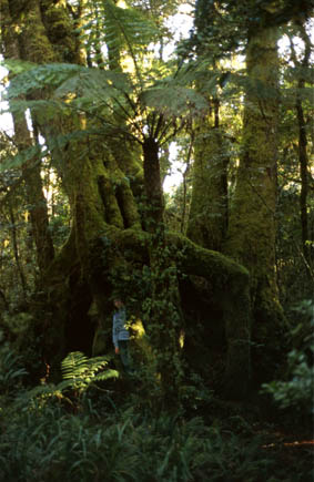 Arktische bzw. Antarktische Buchen entstammen der alten Flora des Gondwanalandes und sind Zeuge einer früheren, wesentlich kühleren Epoche. Die Wurzelsysteme dieser Südbuchen sind über 5000 Jahre alt. Aus der Wurzel entspringen neue Zweige, wenn die Stämme in einem Alter von mehrern 100 Jahren absterben. Durch die Errosion werden die Wurzeln langsam freigelegt und überziehen sich mit einer rindenartigen Haut. | |