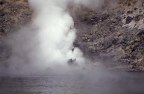 Austritt der heißen Schwefeldämpfe aus dem Oyunuma-See | |