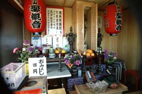 In der Nähe des Gipfelpunktes befindet sich dieser kleine Opferaltar, wo Blumen, Lebensmittel und andere Dinge gespendet werden. | |